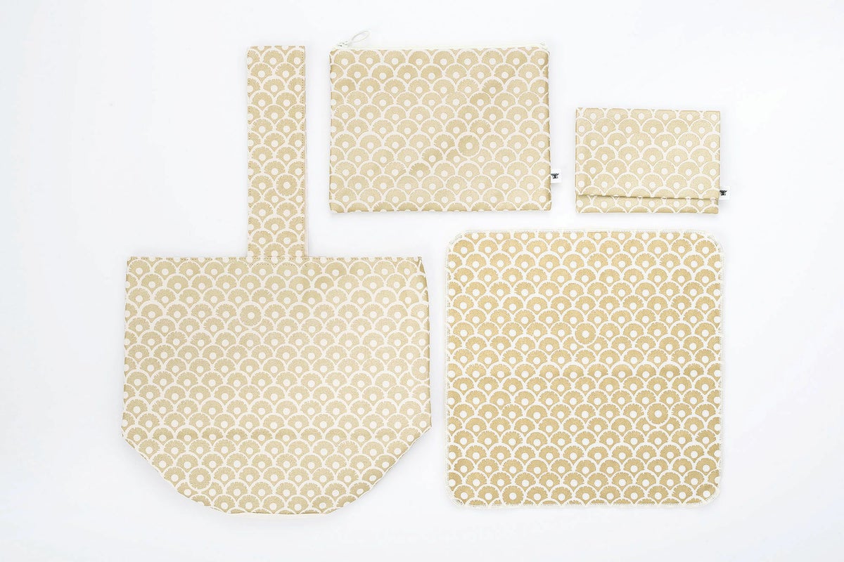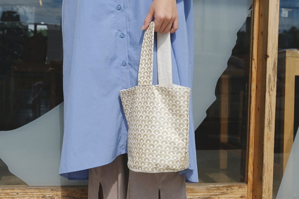さらに、職人が一枚ずつシルクスクリーンで丁寧にハンドプリントしたこだわりの布を使用手仕事ならではのあたたかみと、ほどよい個性がコーディネートを引き立てます。