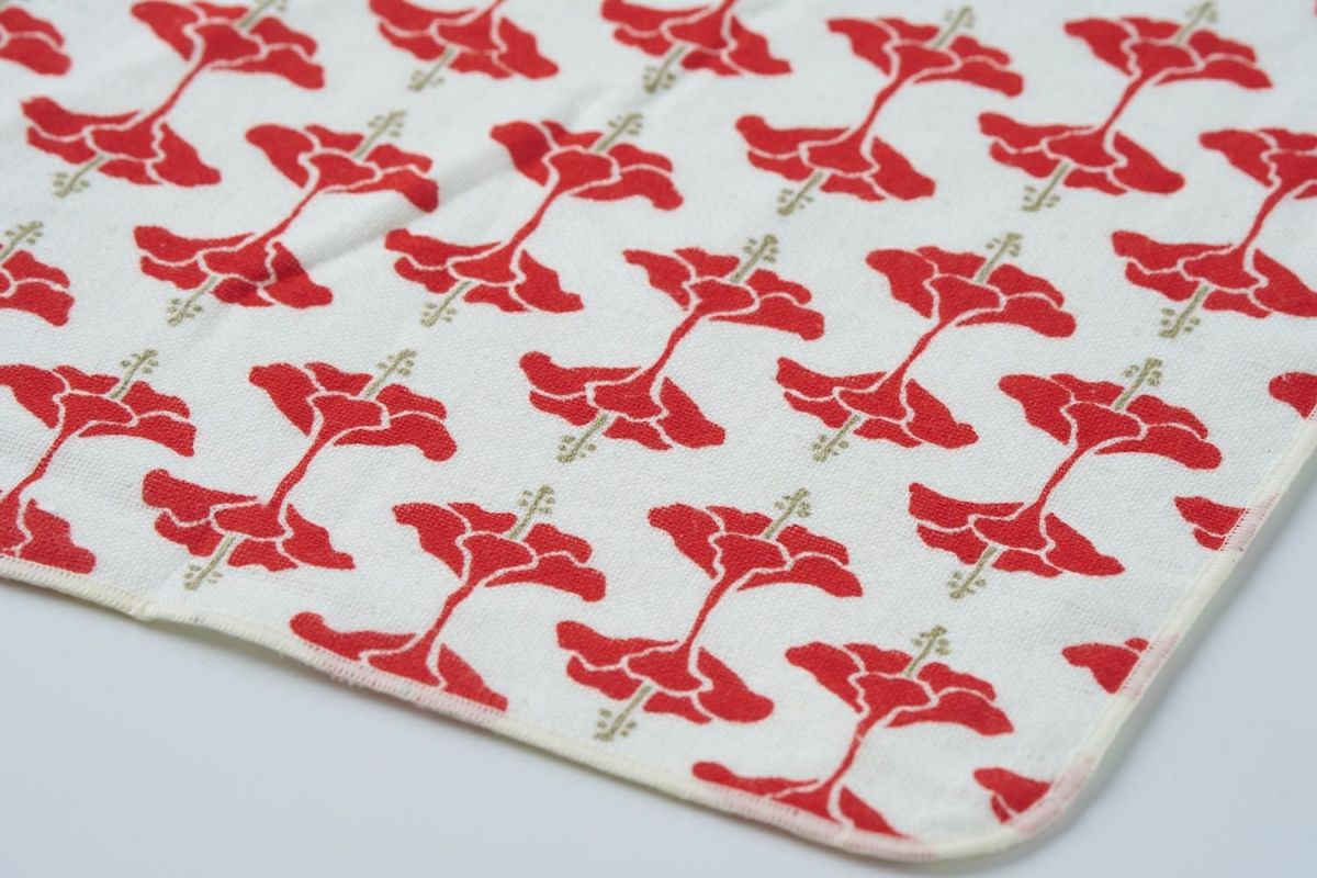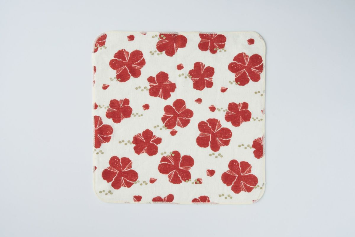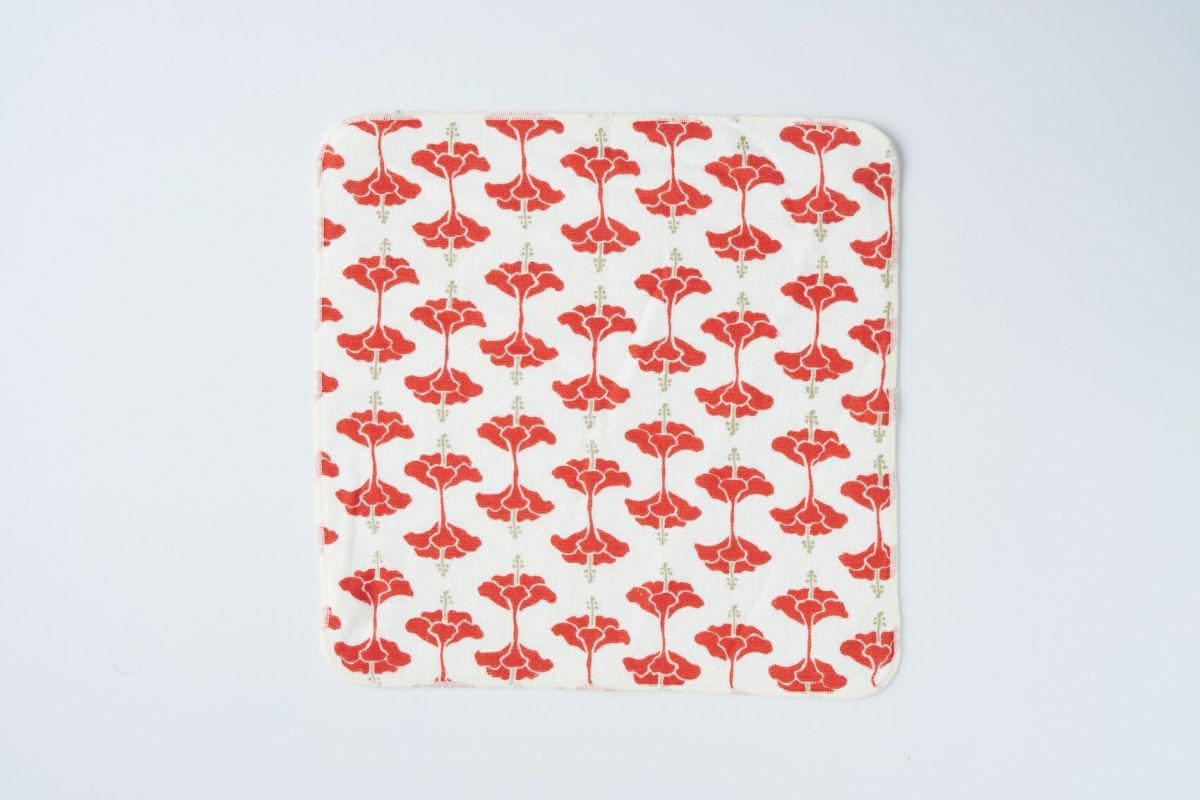 やわらかガーゼとタオル地の心地よさ 表はやわらかなガーゼ、裏は吸水性の高いタオル地を使ったハンカチです。分厚すぎないハンドタオルサイズで、バッグやポケットに入れて持ち歩きやすいのが特徴。 一つひとつ、デザインの解説付きオリジナルパッケージ入り。ちょっとしたギフトにもおすすめです。 生地は、職人がシルクスクリーンで丁寧にハンドプリントしたこだわりの一枚。日常を少し特別にしてくれるアイテムです。