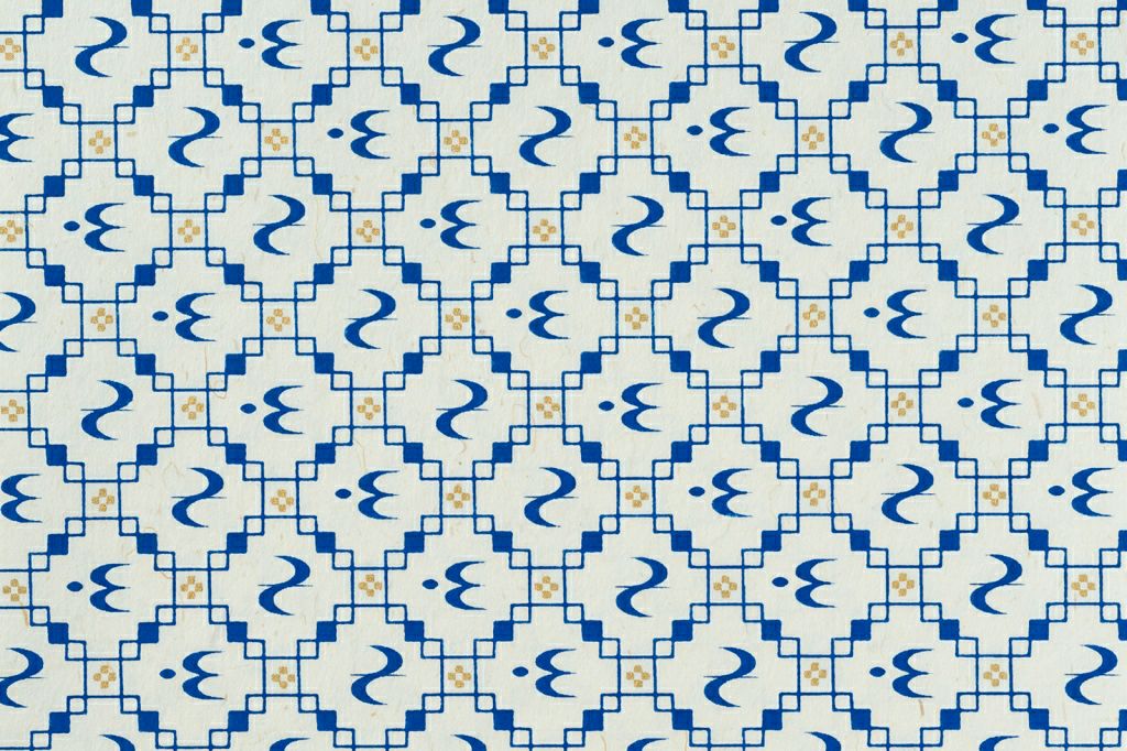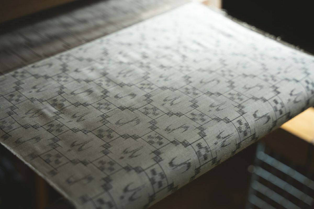 沖縄の伝統的な織物、絣(かすり)の文様をイメージしました。約600種類あるとされる図柄を組み合わせて多彩な布が織られています。八十八は88歳の米寿祝の時に着る「ますます長寿」を意味する縁起の良い着物の柄です。