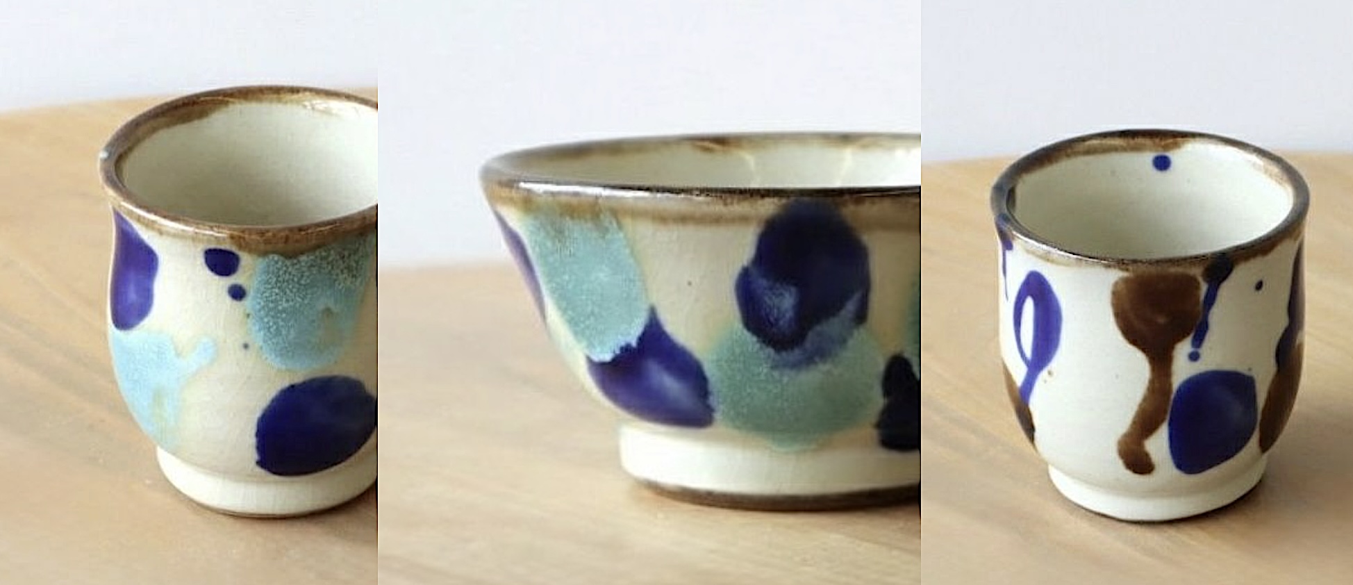 「点打ち(てんうち)」という技法は、釉薬に点を打って模様を描く伝統的な手法で、均一ではなく自由に打たれたドット柄が魅力です。