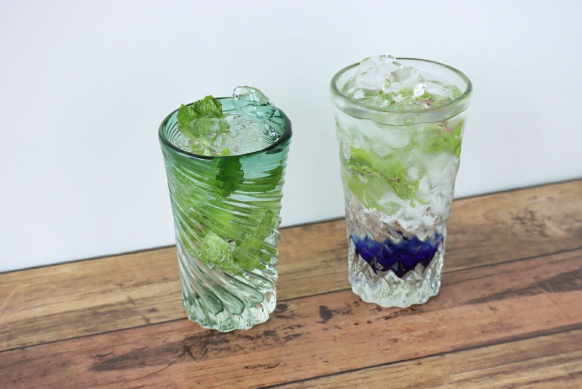 読谷村に工房をかまえる清天では、空き瓶などの再生ガラスを使い、適度な厚みや独特の透明感など再生ガラスの特徴を最大限に引き出すモノ作りを続けています。