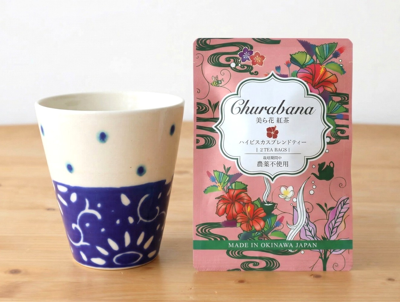 沖縄は上質な紅茶の産地「美ら花紅茶」のハイビスカスブレンドティーでゆったりティータイム。なんと、お茶の色はピンク色なんですよ。やちむんのカップとプレゼントすればきっと喜ばれるはずです。