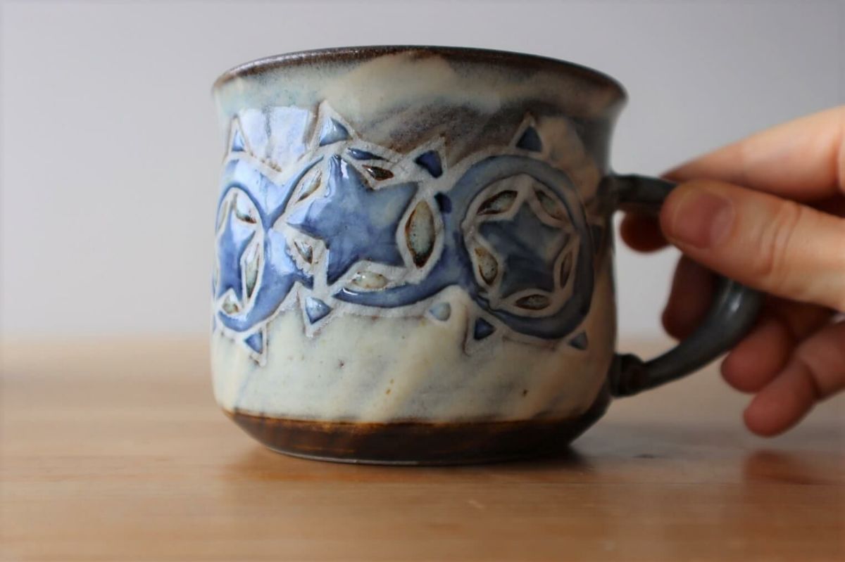 こちらのマグカップは、落ち着いたグレーと並ぶ星達が夜空のよう。