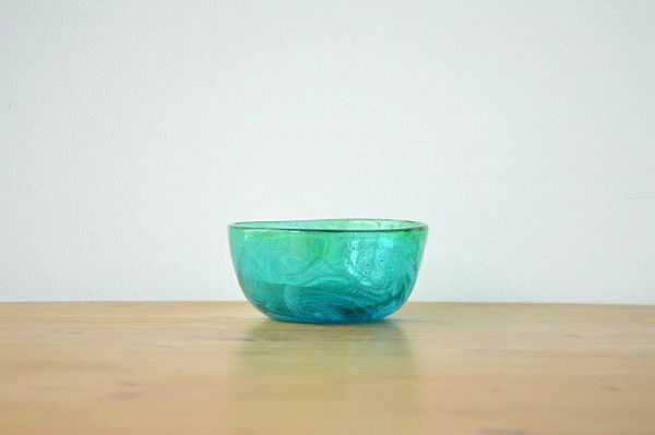 1000度を超える熱で真っ赤に溶けたガラスが鉄のパイプから息を吹き込まれることで様々な色と形へと姿を変え美しい器が生まれます。沖縄の工芸としては比較的歴史は浅く、100年ほど前に製造が始まったとされています。戦前から戦後しばらくの間はランプの火屋(ほや)や駄菓子を入れるビンなど実用品が中心に作られていました。