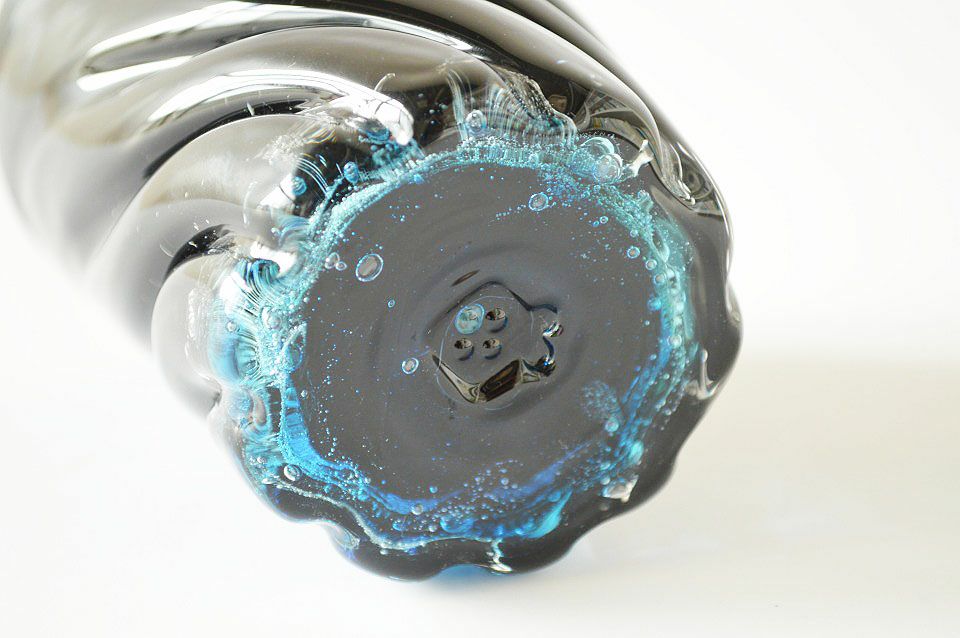 沖縄のマリンスポーツファンにはおなじみの海中の絶景スポット、恩納村の「青の洞窟」。その風景をなんと琉球ガラスで再現してしまったという、高度な技巧の産物がこちらのグラスです。グラスアート青い風は、読谷村にかまえた工房で琉球ガラスの原点を大切にしながら新しい試みを続け、ユニークで美しく、使い勝手も良いガラスを作り続けています。