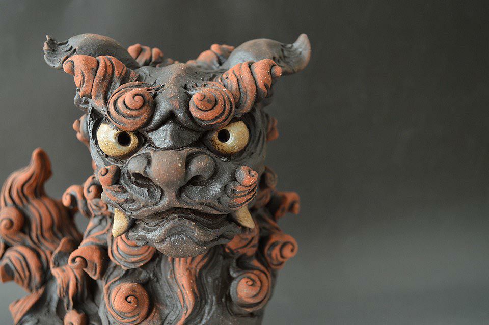 型などを使わず、すべて手作業で成型する「手捻り(てびねり)」という技法で制作されたシーサー