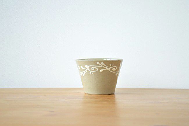 女性の手にも扱いが楽なサイズで、カップ、湯のみ、そばちょこにと、幅広く使いまわしがきくフリーカップ。壺屋という土地にこだわって作陶を続ける窯元・育陶園から、これまでのやちむんには見られない控えめな色味とかわいらしい絵づけのシリーズが登場です