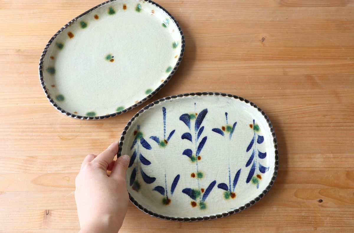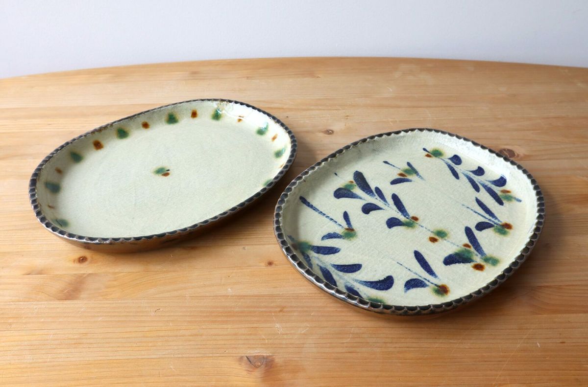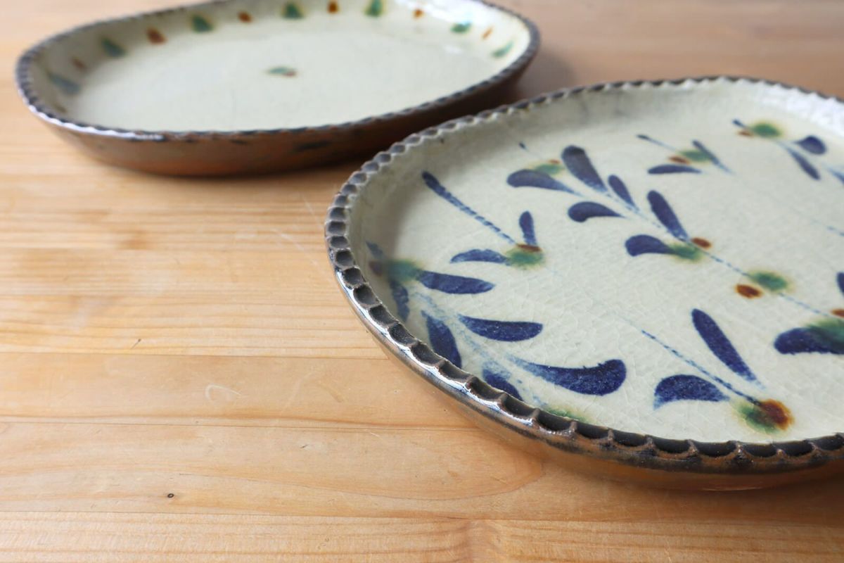 やちむん 七寸皿 唐草染付(緑飴)/やちむん工房與那嶺