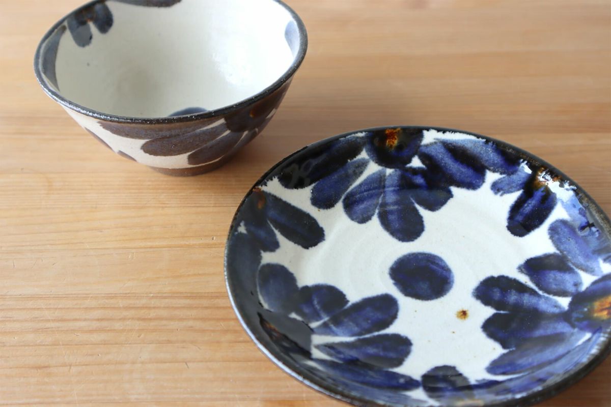 やちむん 五寸皿 唐草染付(緑飴)/やちむん工房與那嶺