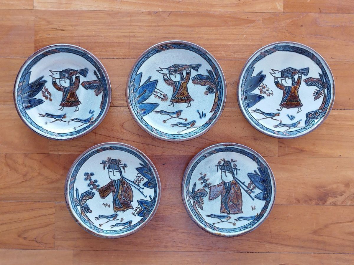線彫り五寸皿(踊り子・海人) アトリエ五香屋