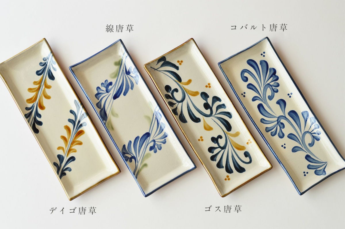 サンマ皿 唐草 (角皿)/ 陶眞窯