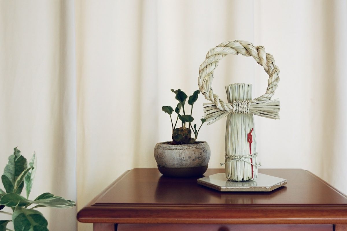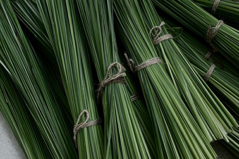 新しい一年を迎えるしつらいに、沖縄・恩納村で育ったベチバーを用いた迎春飾りをご紹介します。青みを残したまま丁寧に乾燥させた葉を束ね、ひとつひとつ手仕上げで形にしたシリーズです。