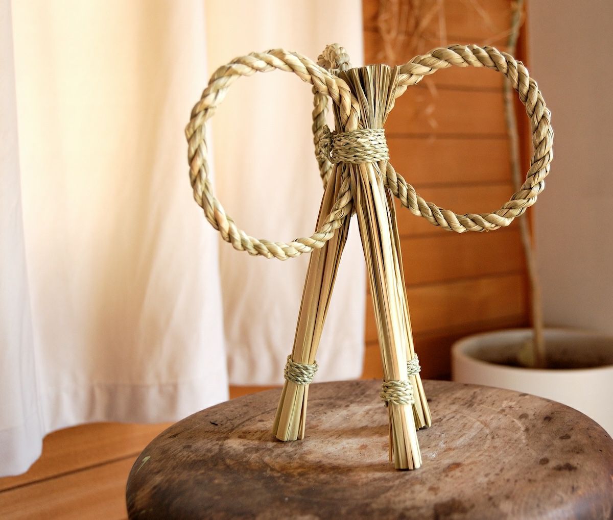 壁に掛けても、棚や玄関にそっと置いても、空間に軽やかな存在感を添えてくれます。香りを楽しむアロマディフューザーのように使うこともでき、お正月を過ぎたあともインテリアとして長くお楽しみいただけるのが魅力です。時間とともにゆっくり変化する色合いも、自然素材ならではの味わいです。