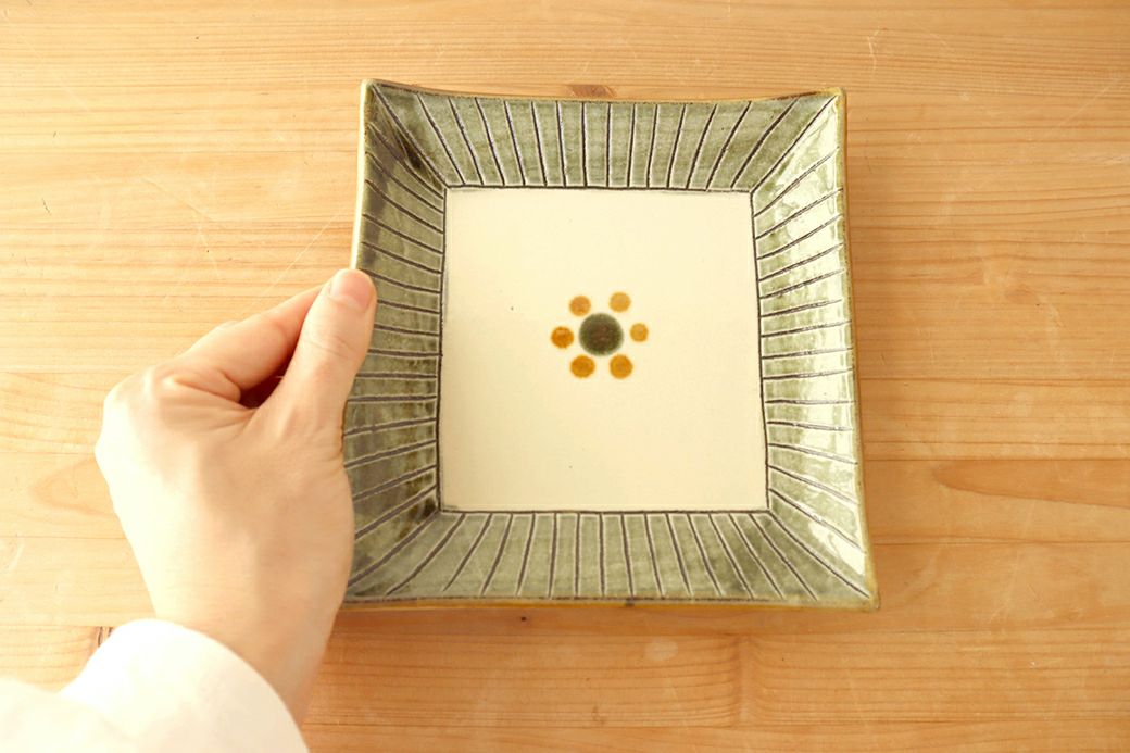 四角皿 15cm 花ぐ~線彫/ 陶眞窯
