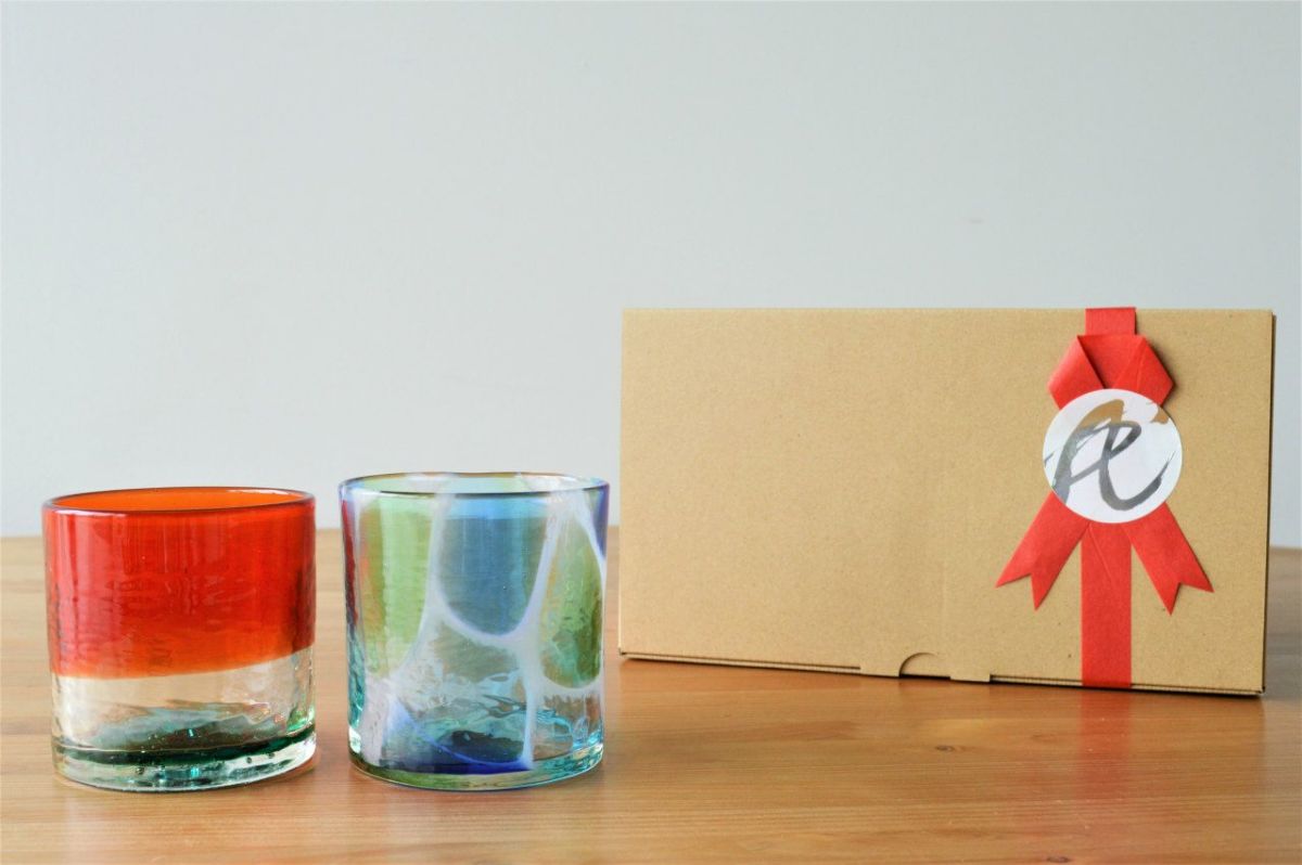 残波の夕日 & 海想 琉球ガラスのロックグラスセット
