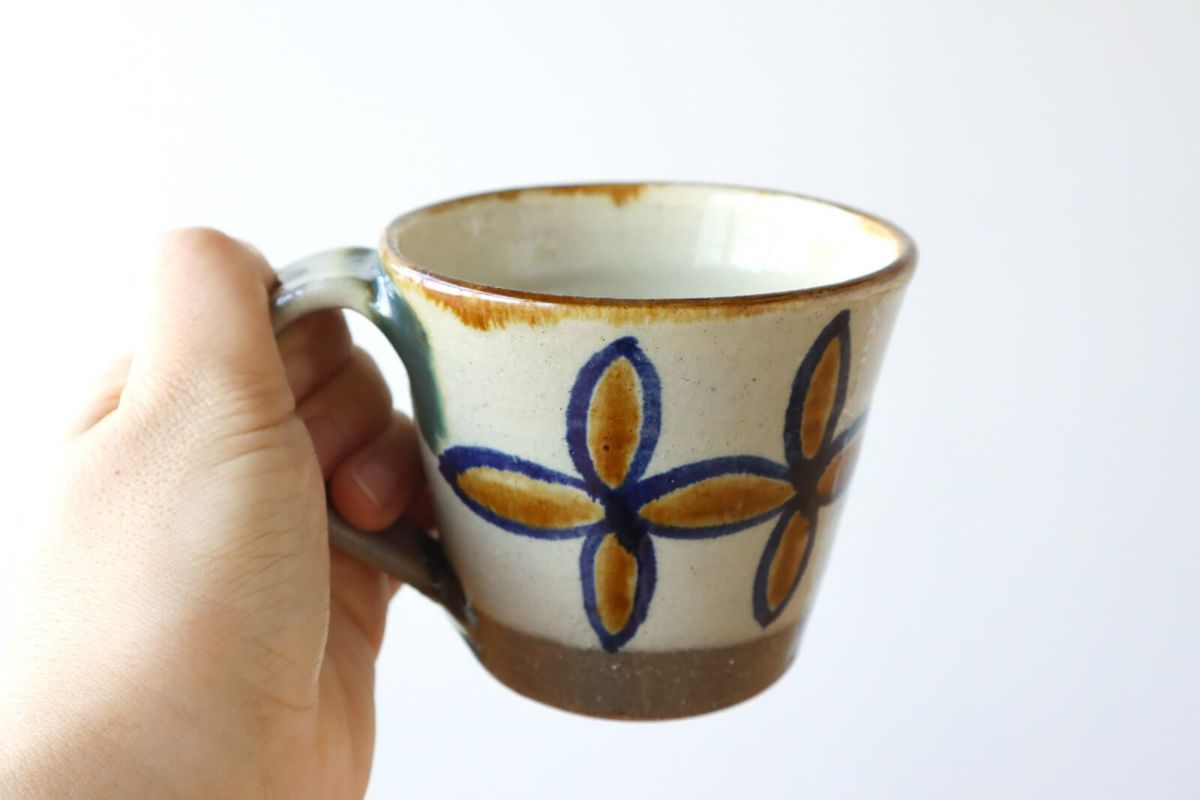 こちらのは、お花が手をつなぐようにカップを彩るつなぎ花紋。 可愛らしさと優しい雰囲気があります。