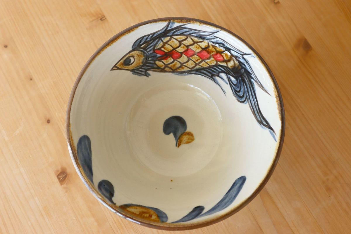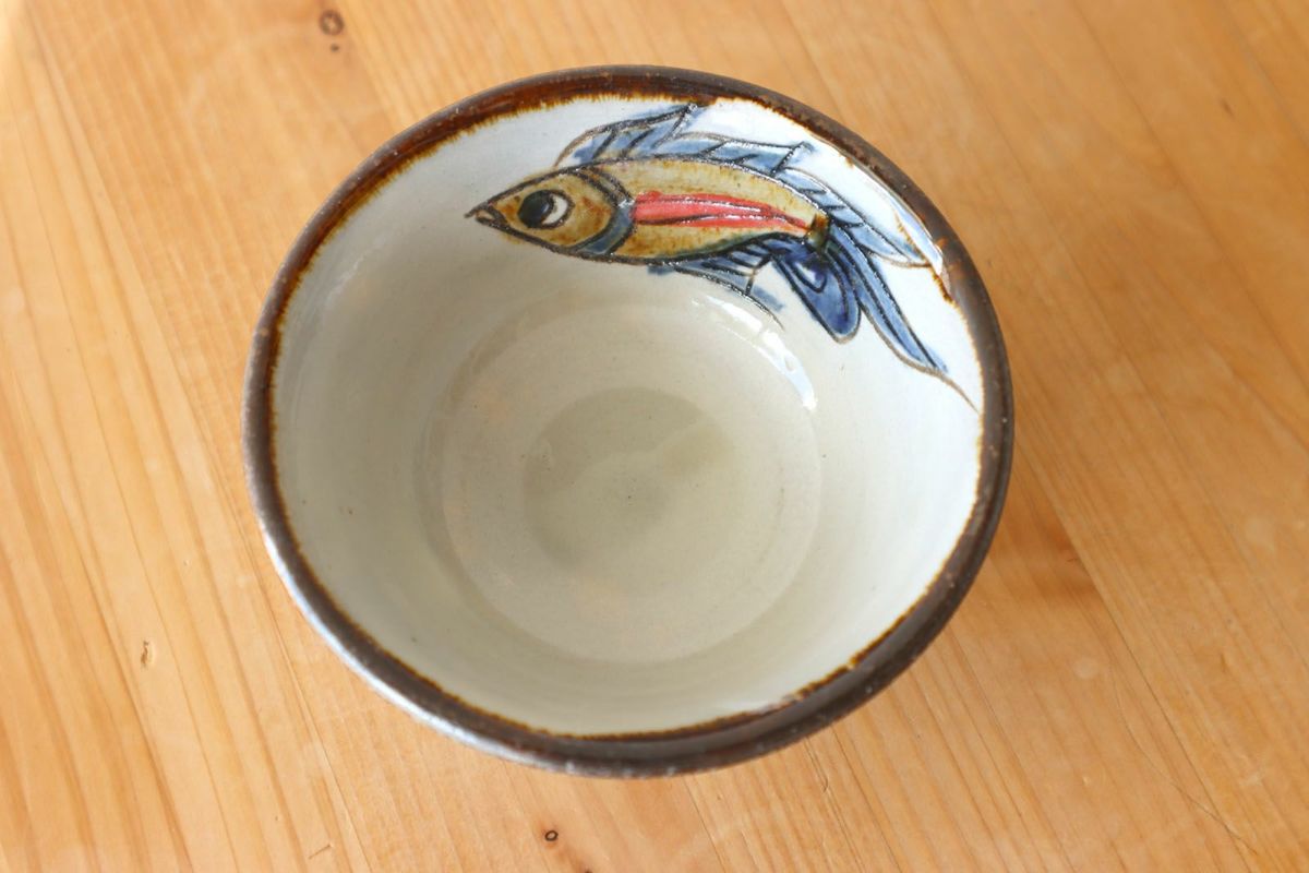 マカイ4寸 唐草魚紋重焼  秀陶房