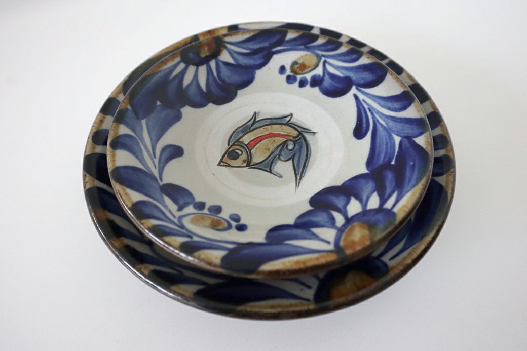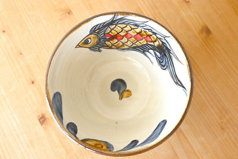 マカイ6寸 唐草魚紋重焼  秀陶房
