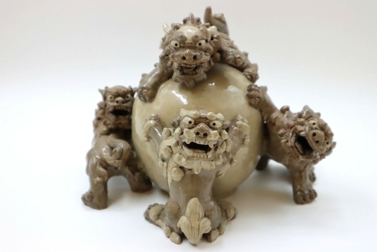 思い出したように、ちょっとうれしそうに「新しいものを作るとね、面白いというか自分が今まで思いついたこととか、やっているうちにいつかアイデアが湧いてきたりする。そういうところが面白いね」と言って笑う。シーサーは作る人に似ていると言うが、湧田さんがシーサーに似ているようにも見える。それでも今はアイデアに行き詰まっていると付け加えて、シーサーの頭に載せてあったかるかんを食べた。