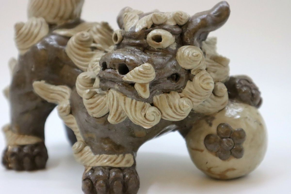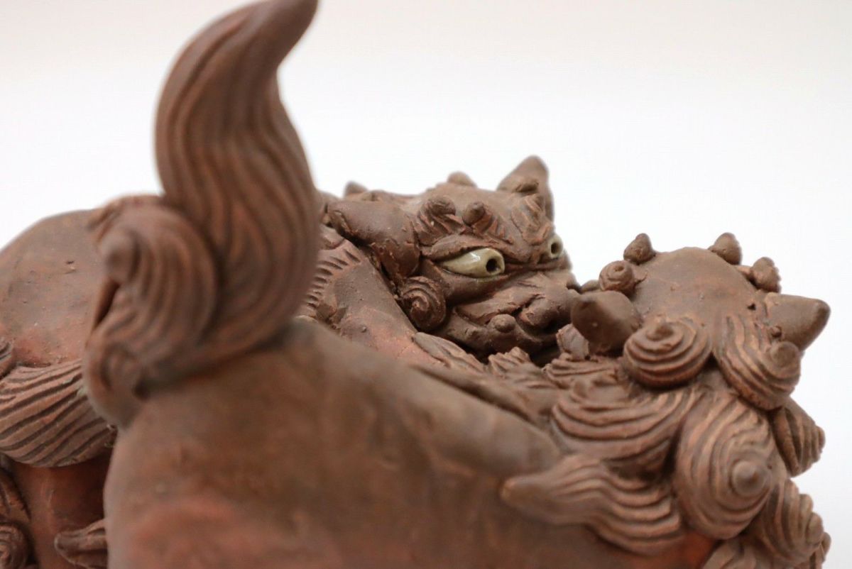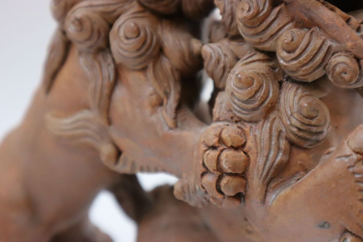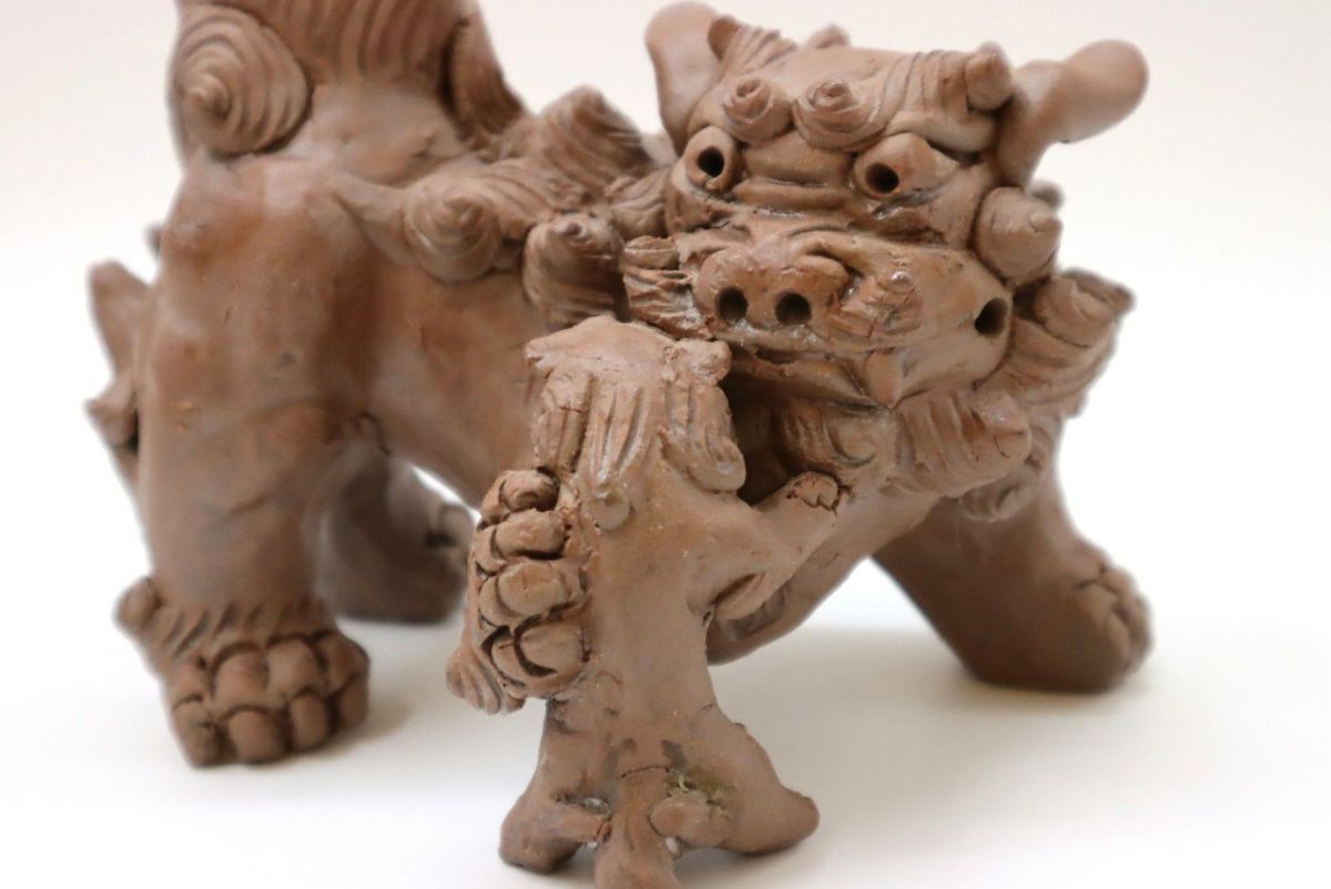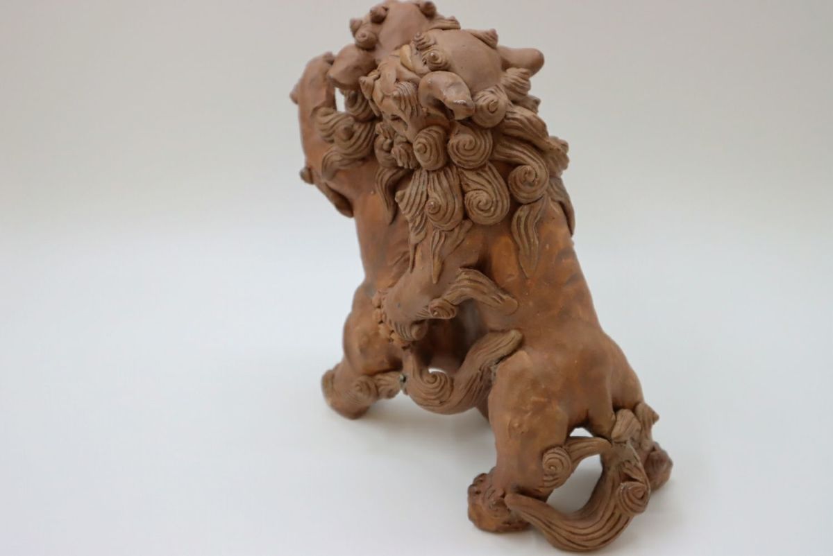楽しい、好きという気持ちをつないできたものではなく、生きていくために踏みならしてきた道だからこそ、飽きることも途中で辞めることもなく続けてこられたのだろうか。言葉にならない、想像のできないそのあるがままの感覚や考え方は、多くあったであろう葛藤や苦難も自身の中に納めて生きてきた湧田さんだからこそ、風情にできたのだろう。 作業風景を見せてもらう。「私はね、筋肉の動きをどうつけたらいいんだろうなということを大事にしている。こだわっているのは、たてがみは大体数が決まっているわけ。口元の周囲は9つ、まゆと髭が2つ、背中のたてがみは10ぐらい。もっと増やそうとも思うけどね、増やすとまた時間がかかる(笑)こんな感じで作っています」。何度尋ねても、おごらずひけらかさない。ありのままの正直な気持ちで自分の作っているものを淡々と説明し、いつもと同じように土を触りシーサーを象っていく。根気ややる気ではなく、体に染み付いた習慣のようなもの。作っている姿を見て何となく腑に落ちる。