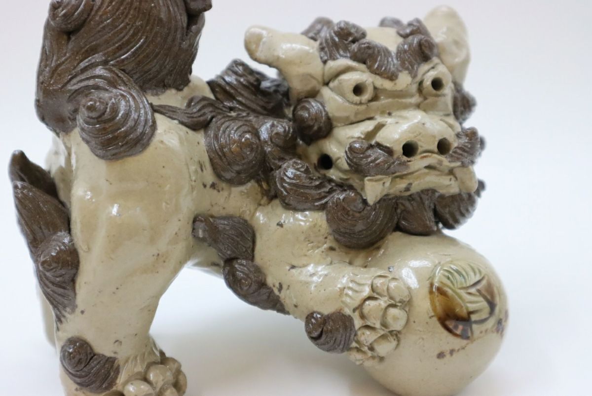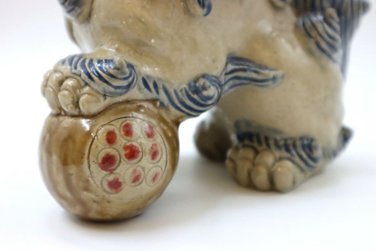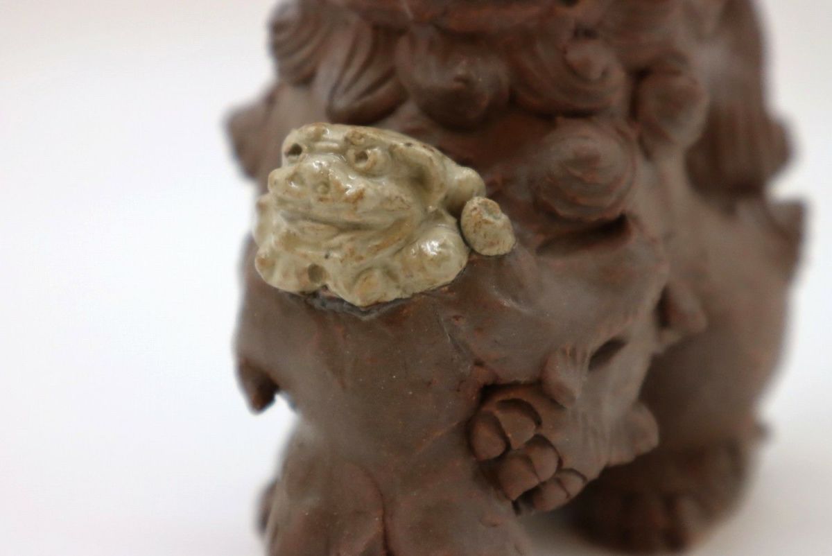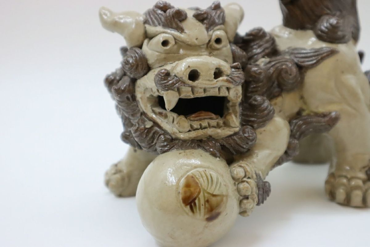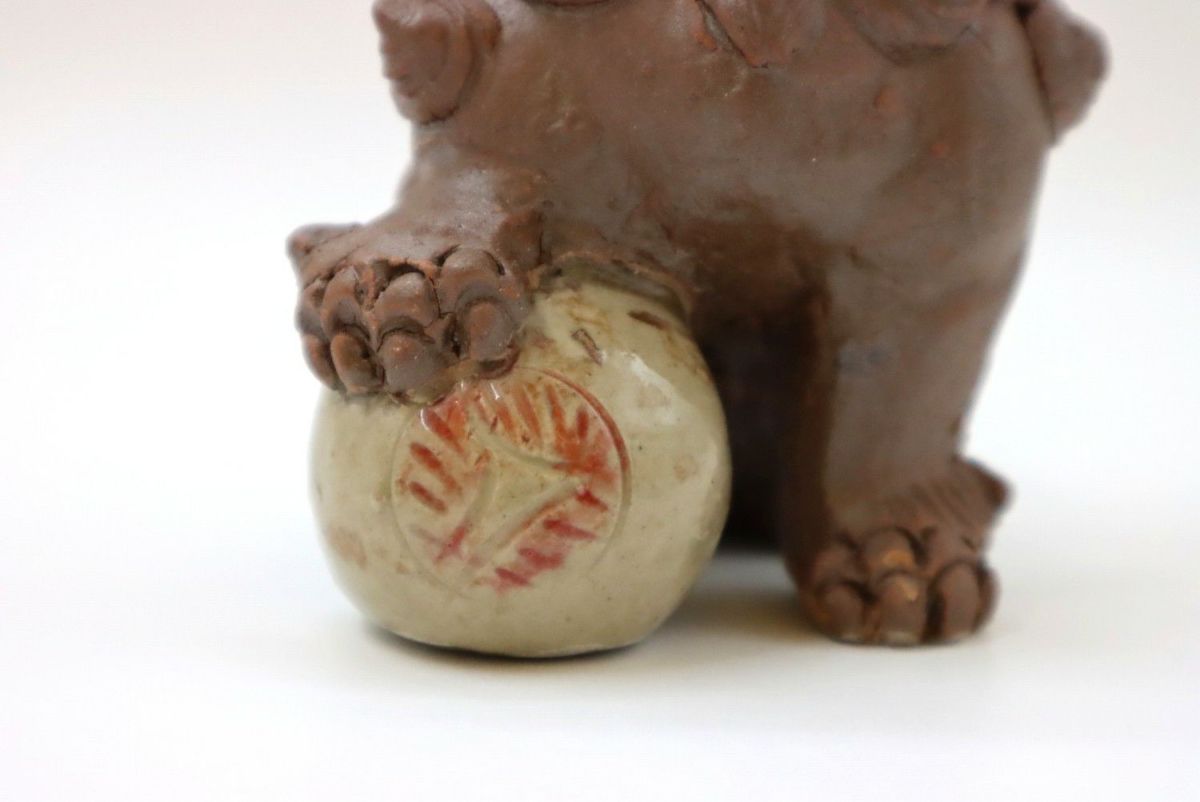 楽しい、好きという気持ちをつないできたものではなく、生きていくために踏みならしてきた道だからこそ、飽きることも途中で辞めることもなく続けてこられたのだろうか。言葉にならない、想像のできないそのあるがままの感覚や考え方は、多くあったであろう葛藤や苦難も自身の中に納めて生きてきた湧田さんだからこそ、風情にできたのだろう。 作業風景を見せてもらう。「私はね、筋肉の動きをどうつけたらいいんだろうなということを大事にしている。こだわっているのは、たてがみは大体数が決まっているわけ。口元の周囲は9つ、まゆと髭が2つ、背中のたてがみは10ぐらい。もっと増やそうとも思うけどね、増やすとまた時間がかかる(笑)こんな感じで作っています」。何度尋ねても、おごらずひけらかさない。ありのままの正直な気持ちで自分の作っているものを淡々と説明し、いつもと同じように土を触りシーサーを象っていく。根気ややる気ではなく、体に染み付いた習慣のようなもの。作っている姿を見て何となく腑に落ちる。