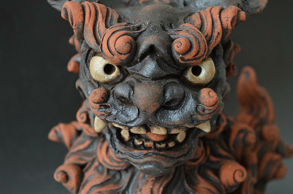 型などを使わず、すべて手作業で成型する「手捻り(てびねり)」という技法で制作されたシーサー