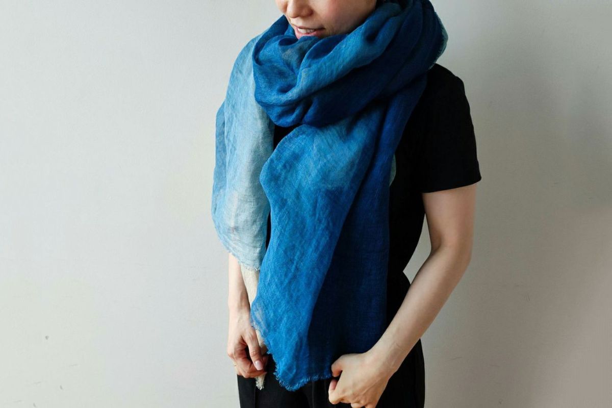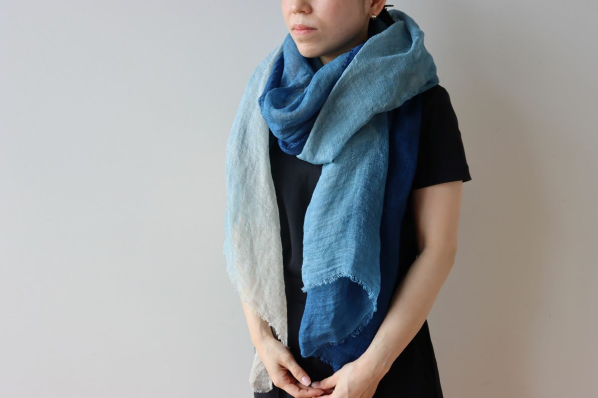 藍染めリネン大判ストール 島藍農園