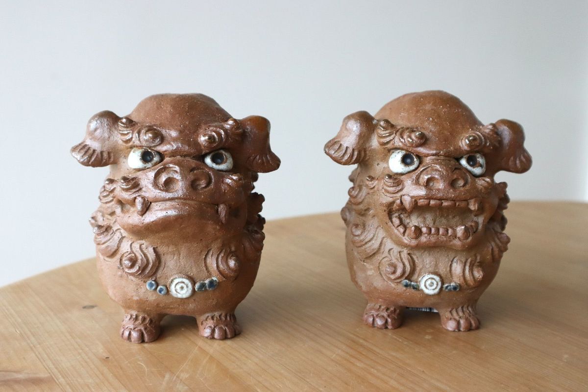 ミニミニシーサーペア 緑 / 置物 / 育陶園