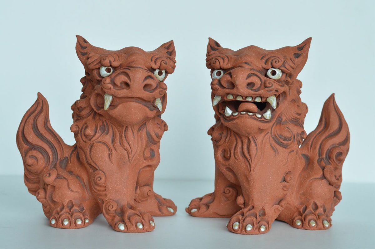 【一点もの】手びねり立型シーサーペア / 湧田陶器