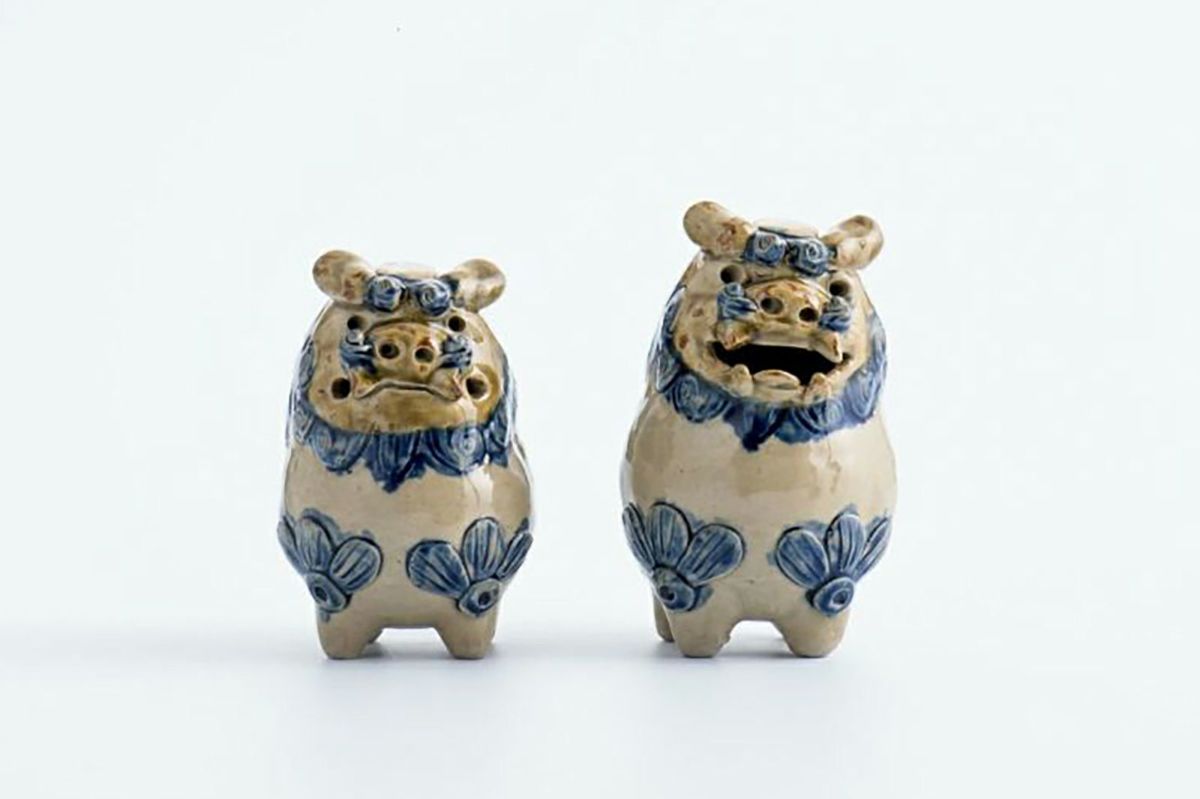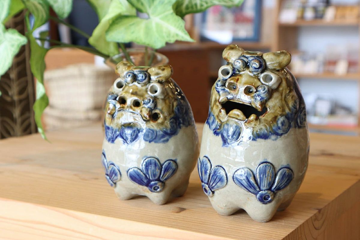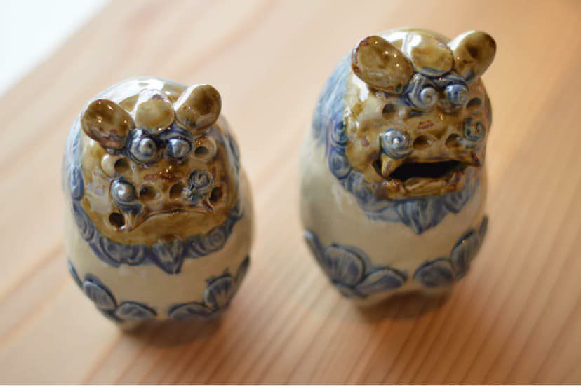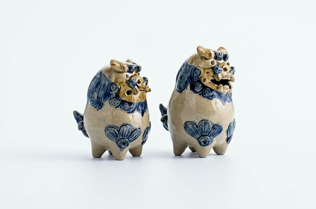 だるまシーサーペア ベージュ×青 / 置物 / 高江洲陶器所