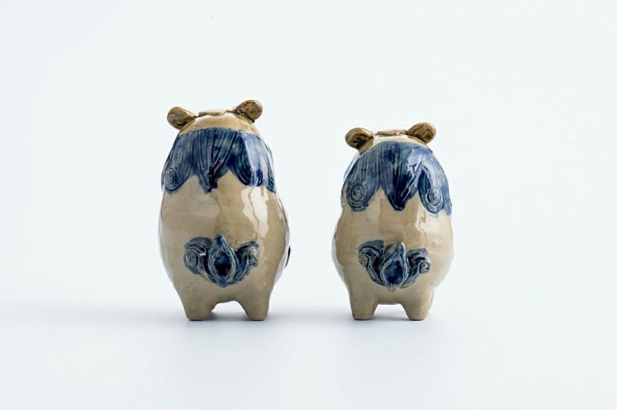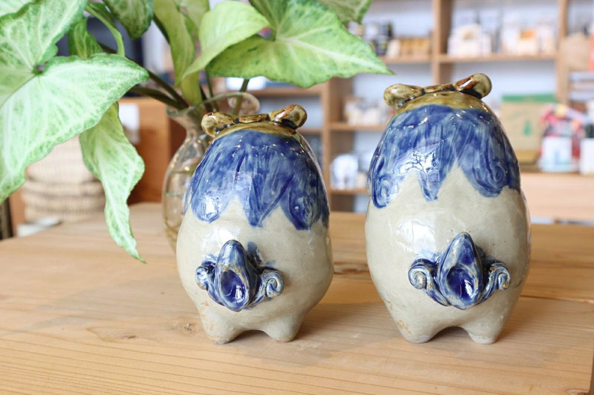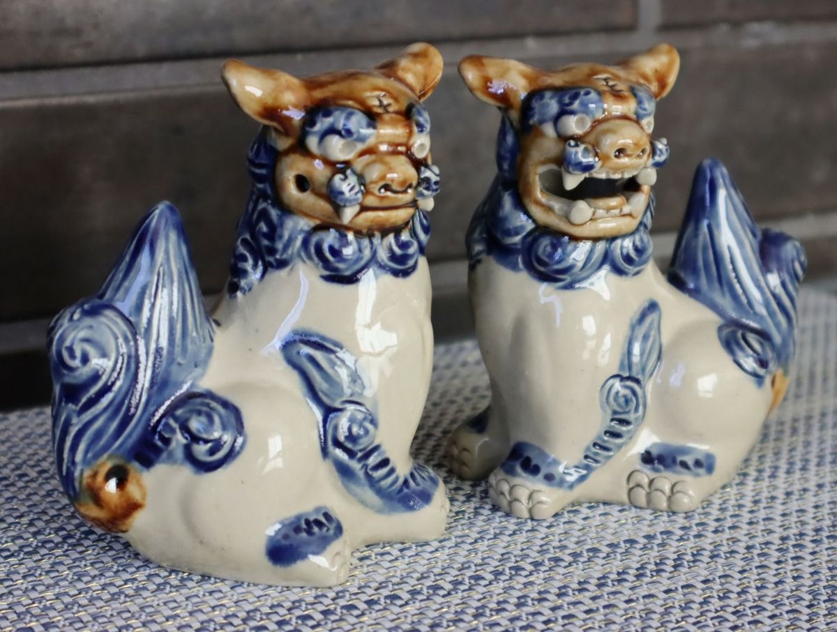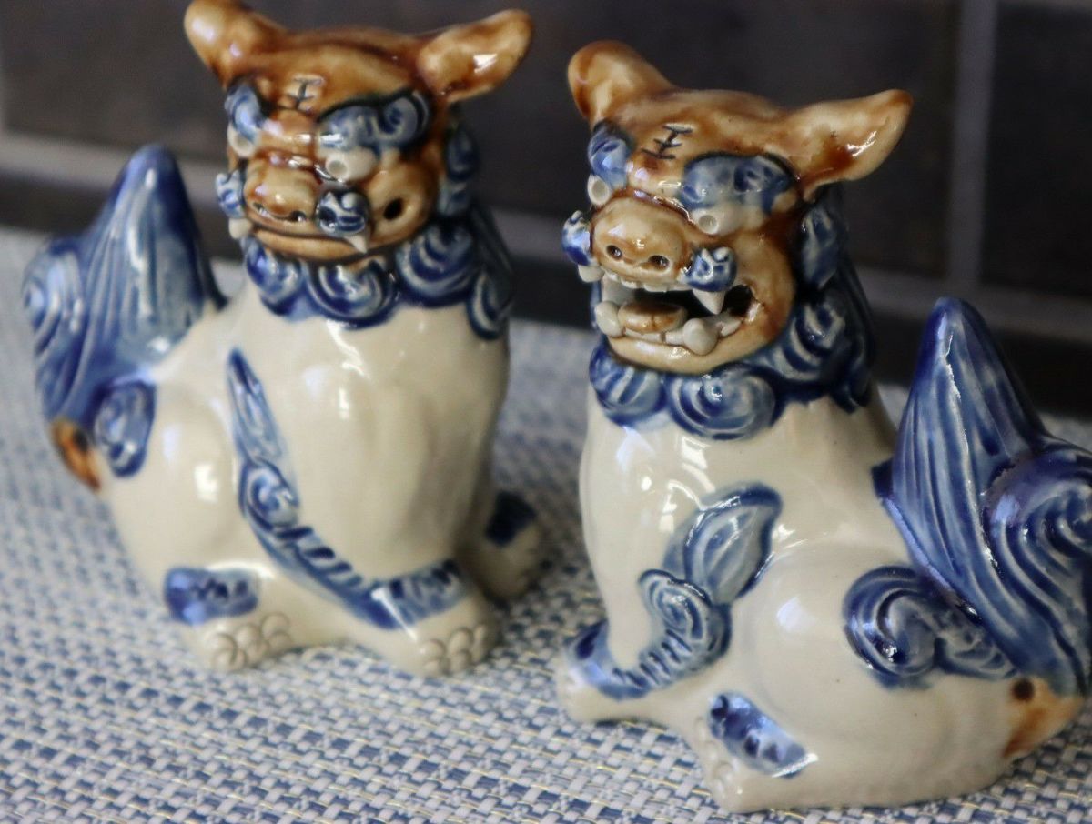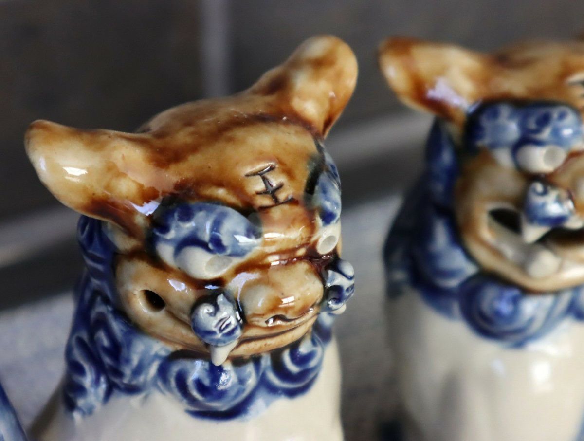 ミニミニシーサーペア 青 / 置物 / 育陶園