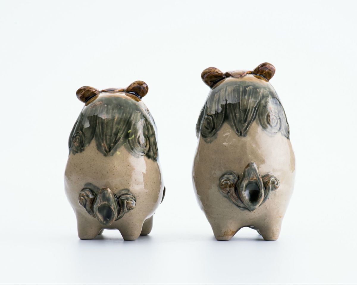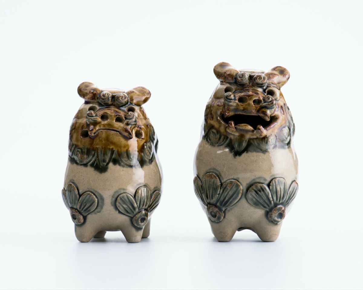 だるまシーサーペア ベージュ×緑 / 置物 / 高江洲陶器所