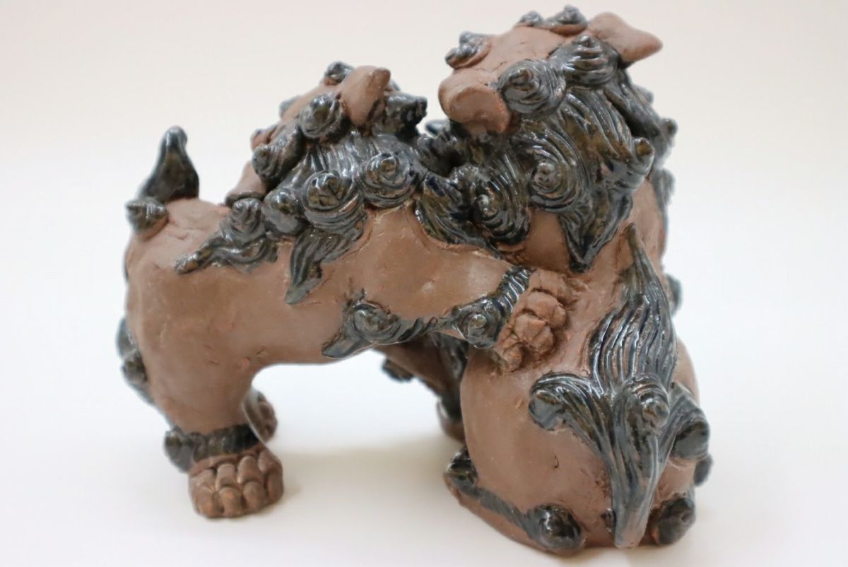【一点もの】毛手巻座型寄添豆シシ(茶) / 湧田陶器 湧田弘