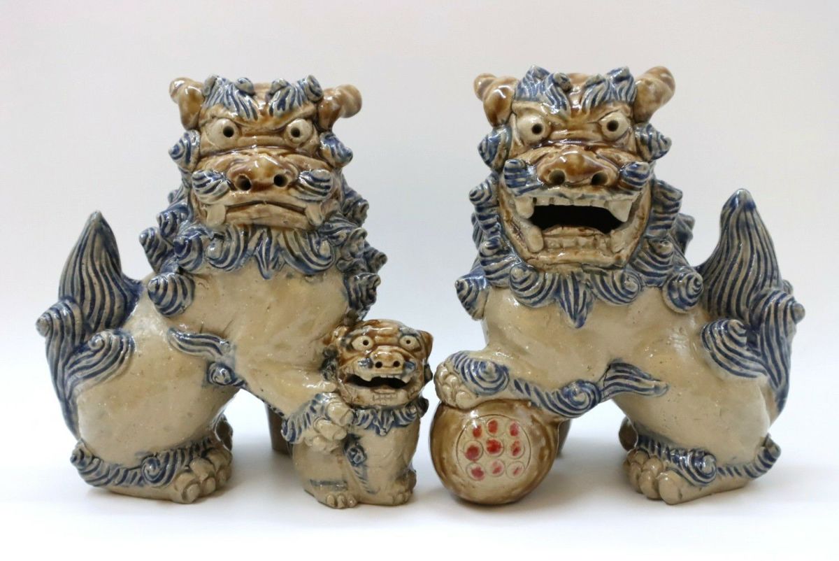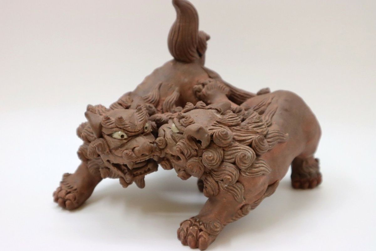 【完売】毛手巻座型玉抱き親子豆シシ / 湧田陶器 湧田弘