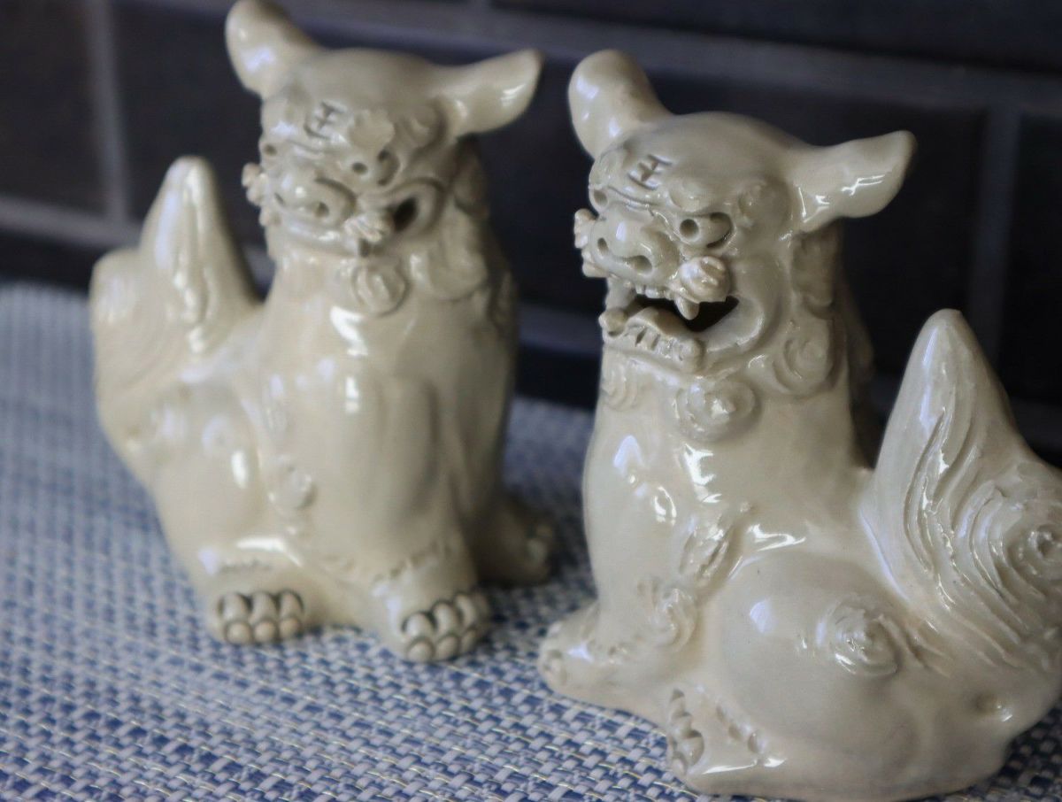 ミニミニシーサーペア 白 / 置物 / 育陶園