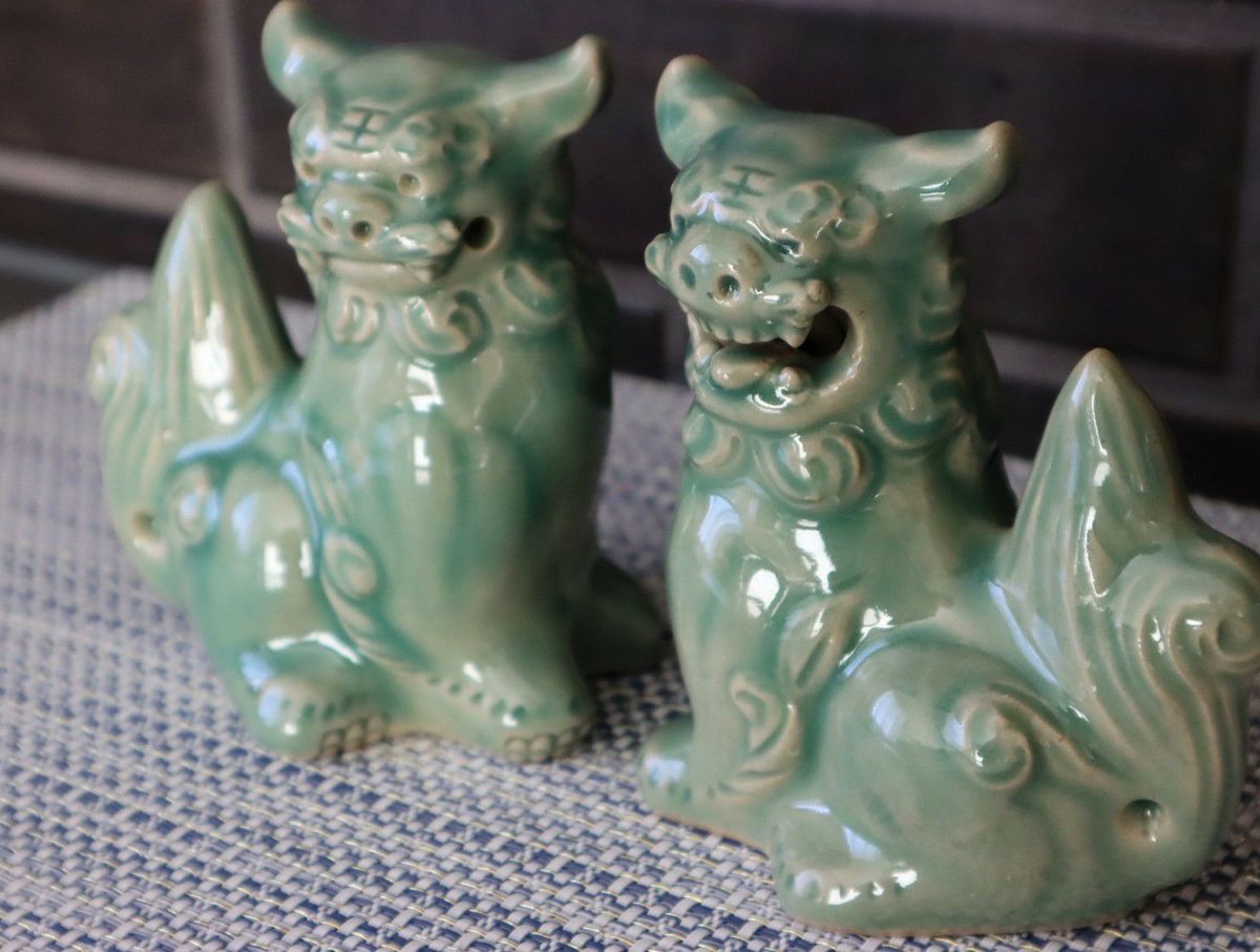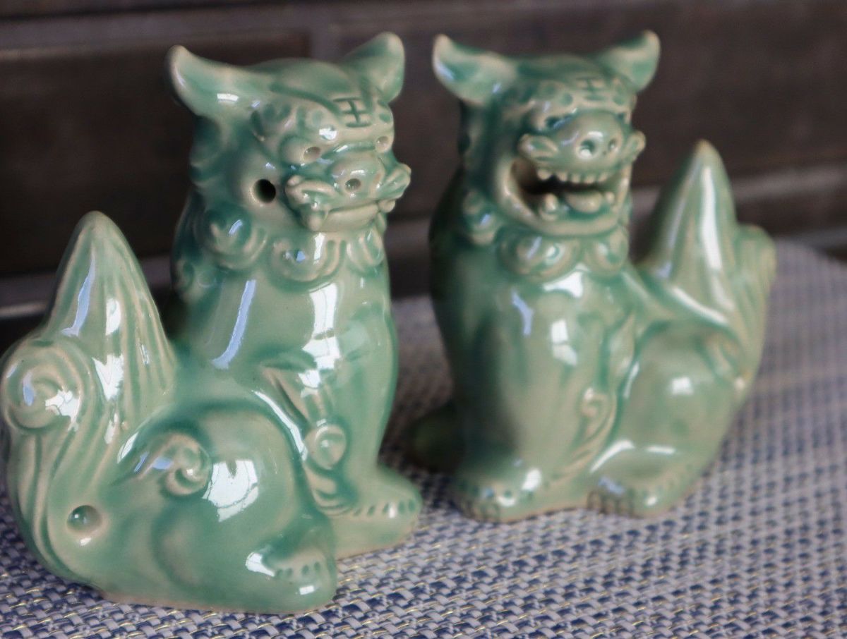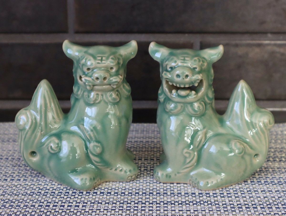シーサーペア10cm 横向き 緑 / 置物 / 育陶園