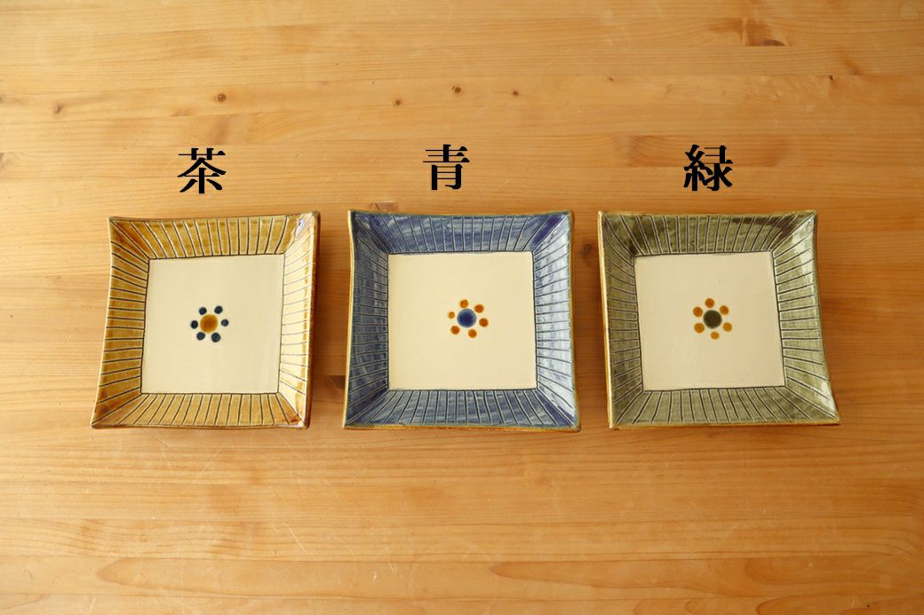 四角皿 15cm 花ぐ~線彫/ 陶眞窯