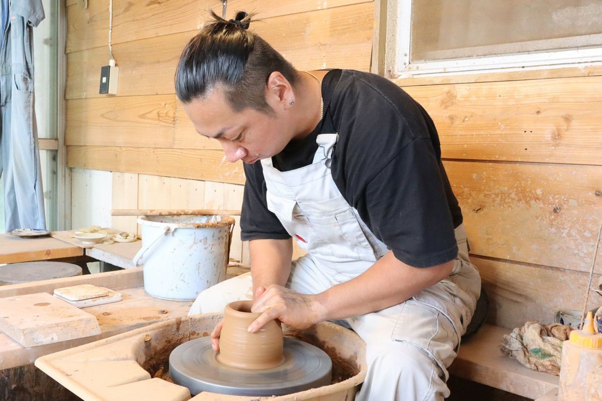 やちむん 五寸皿 唐草染付(緑飴)/やちむん工房與那嶺