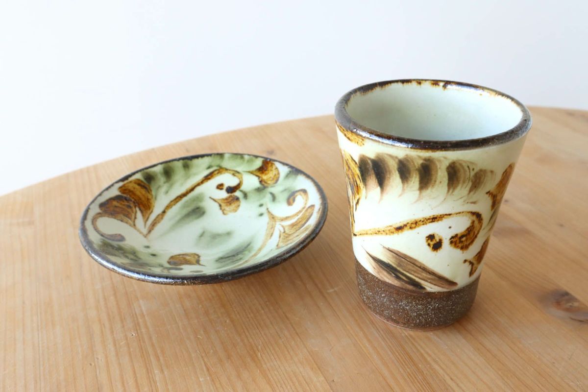 やちむん 七寸皿 唐草染付(緑飴)/やちむん工房與那嶺