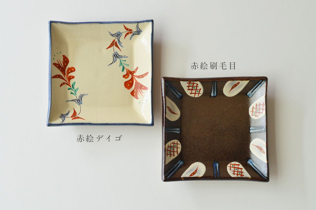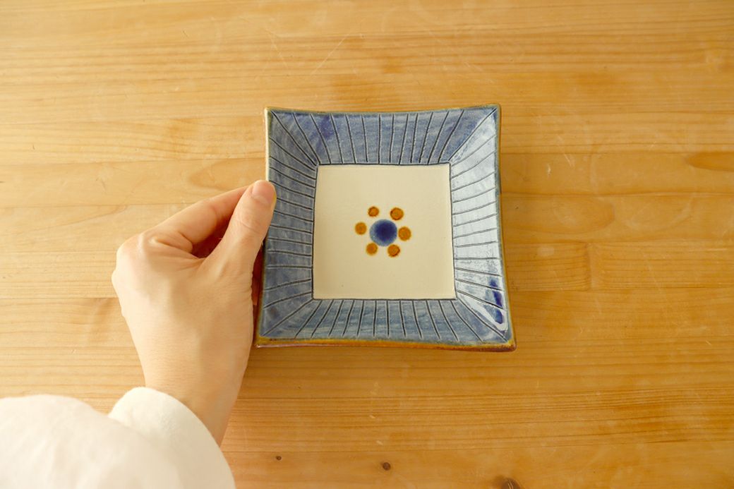 四角皿 8.5cm 花ぐ~線彫 / 陶眞窯