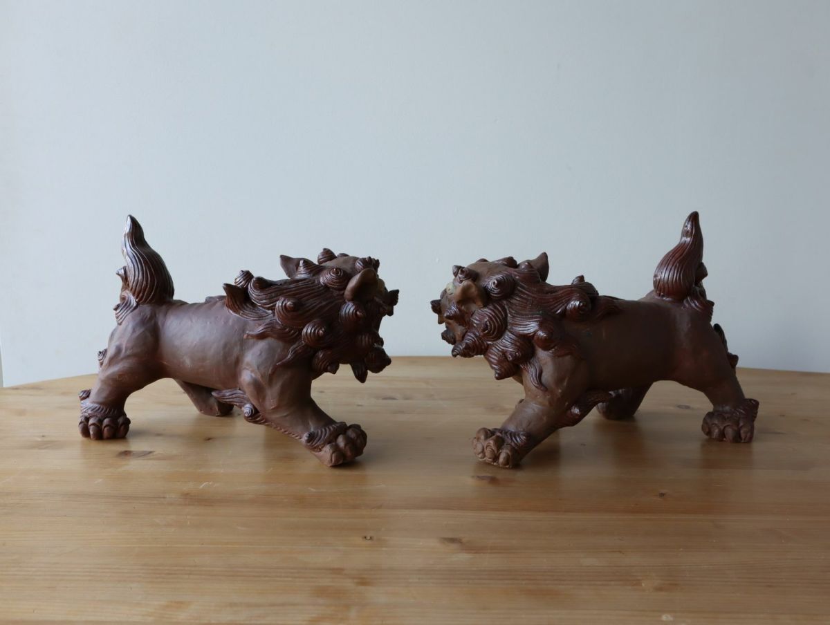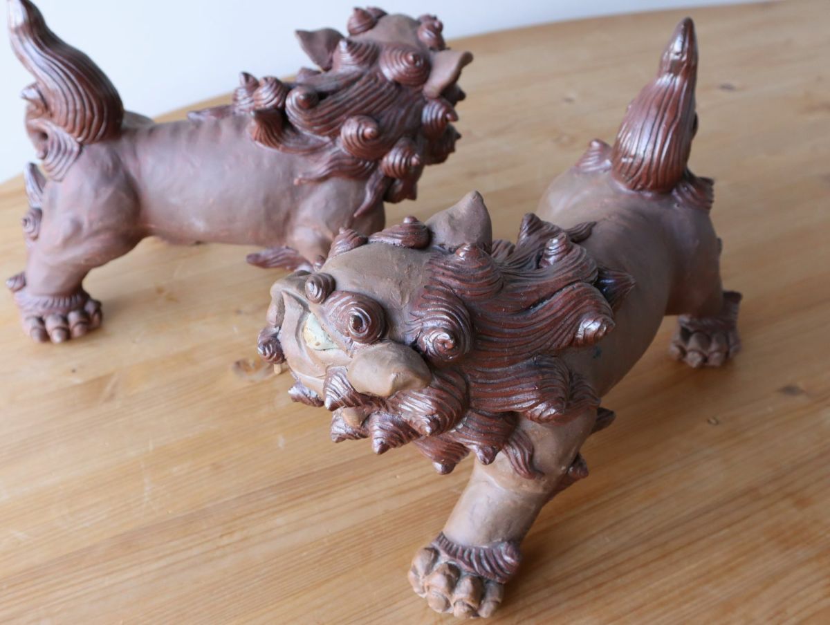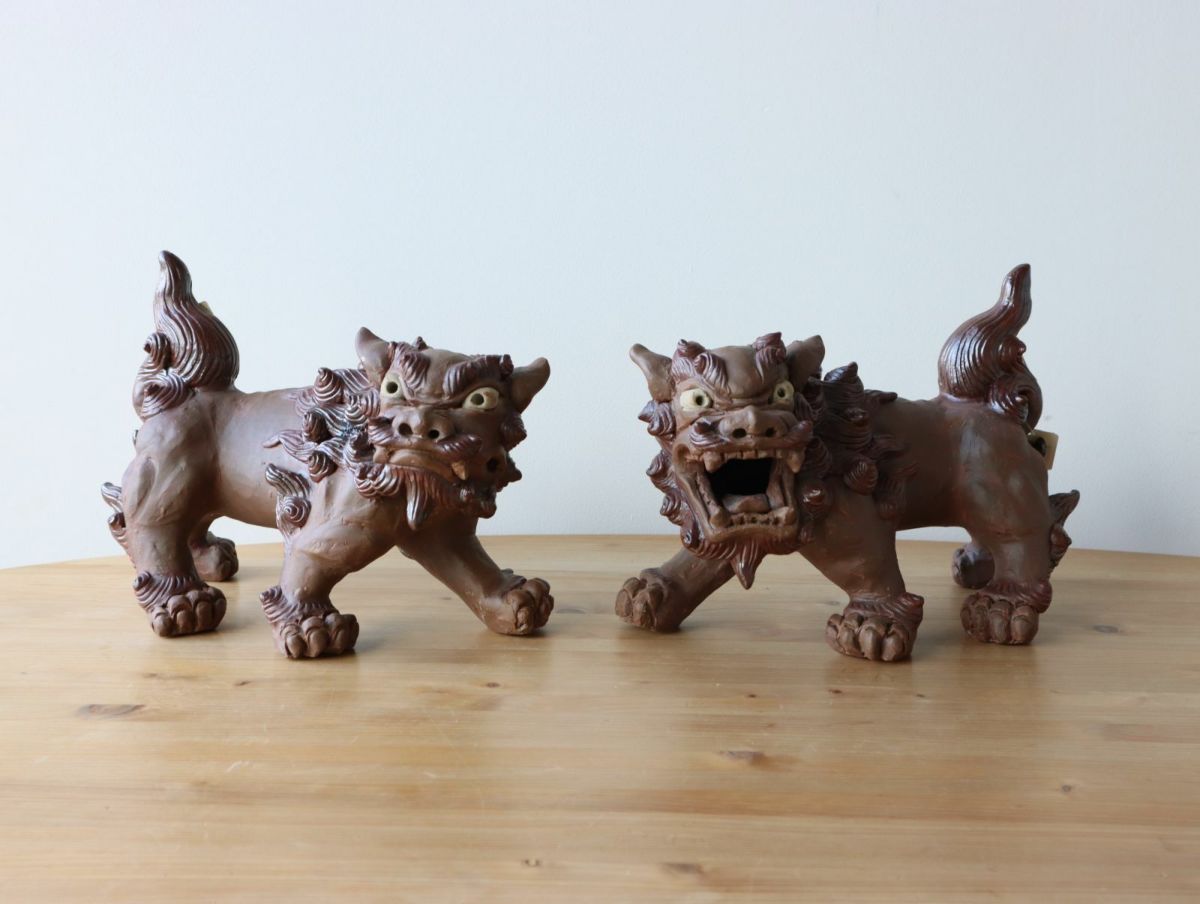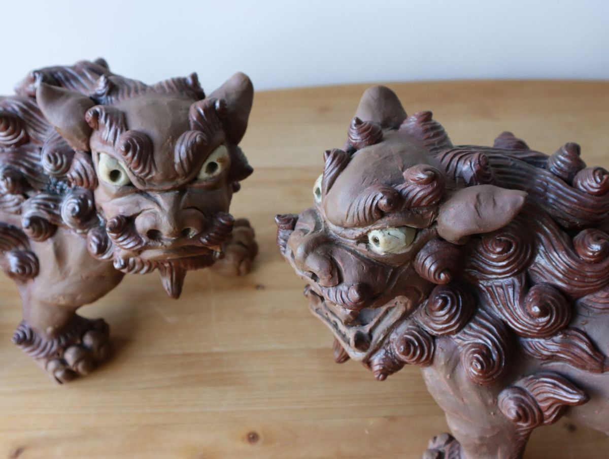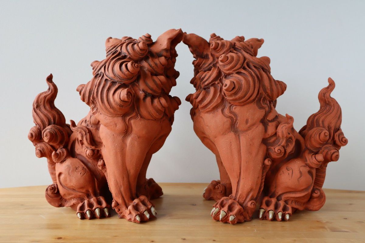 【一点もの】手びねり立型シーサーペア / 湧田陶器